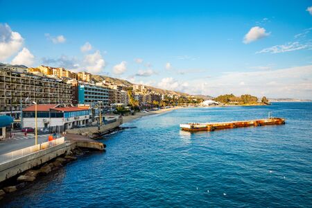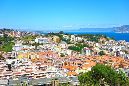 Cityscape of Messina and the Mediterranean Sea, at Sicily island, Italy