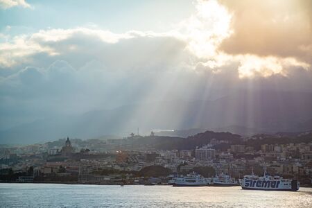 Messina, Italy - 9.02.2019: Beautiful view of cityscape and harbor of Messina from ferry in Sicily, Italy