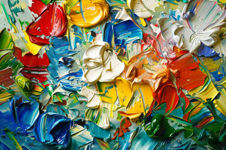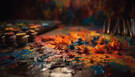 Vibrant colors mix on messy palette for abstract acrylic painting generated by artificial intelligence