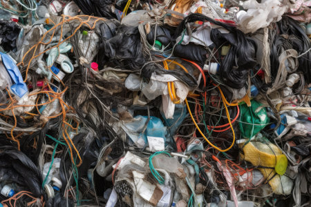 close-up of tangled pile of recyclables, with a clear view of each type, created with generative ai