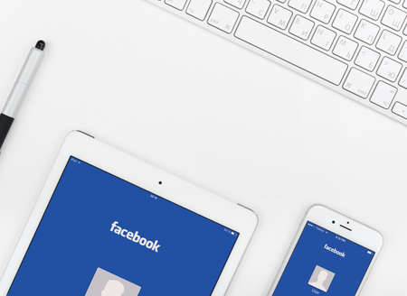 Moscow, Russia - March 11, 2016: Facebook application on the iPhone and iPad display. Facebook is largest social network in the world was founded in 2004 by Mark Zuckerberg.