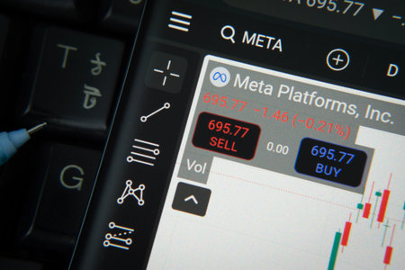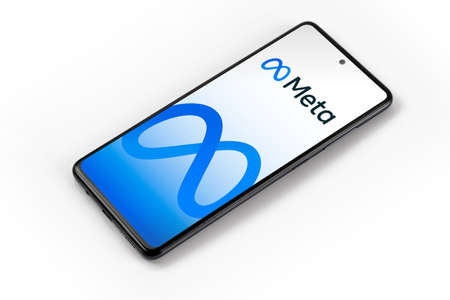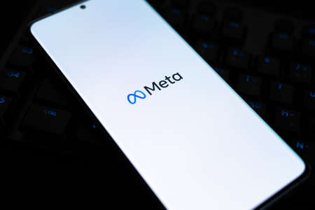 Meta logo on smartphone. Meta Platforms, Inc., doing business as Meta and formerly known as Facebook, Inc.