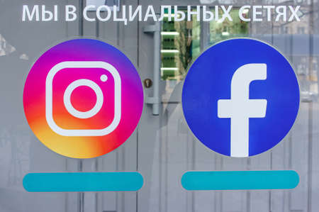 Ukraine - 03.23.2021: Inscription WE ARE IN SOCIAL NETWORKS, Instagram and Facebook logo, editorial, illustrative editorial.