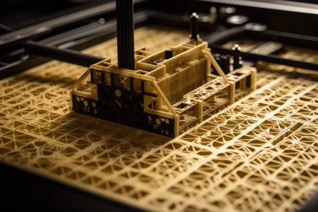 3d printing robot extruding layer of molten plastic to create intricate design, created with generative ai