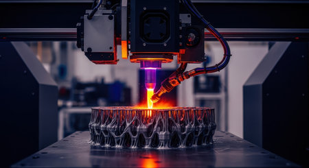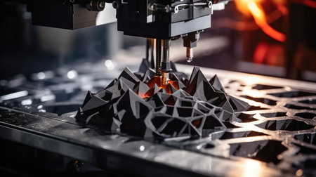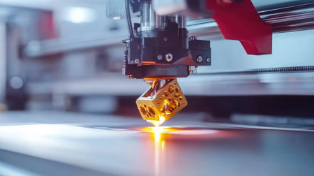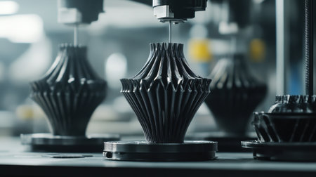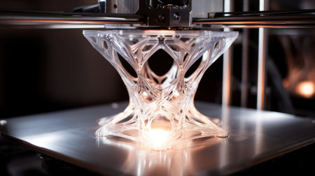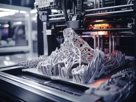Advanced 3D printing process creating intricate designs in a modern manufacturing facility