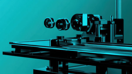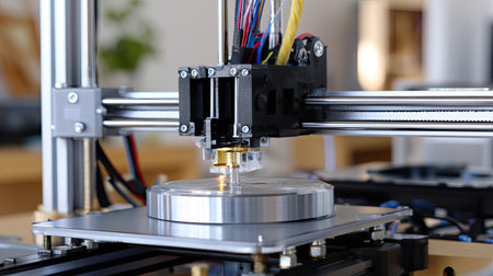 A high-speed D printer manufacturing industrial machine components.