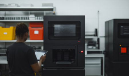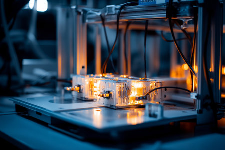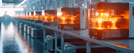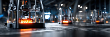 Explore a modern industrial 3D printer situated in a high-tech manufacturing environment, highlighting cutting-edge technology, precision, and innovation in production.