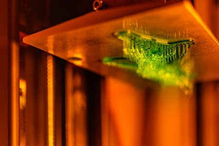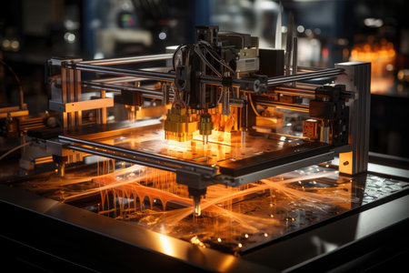 Innovative 3d printer creating futuristic circuit board in modern laboratory