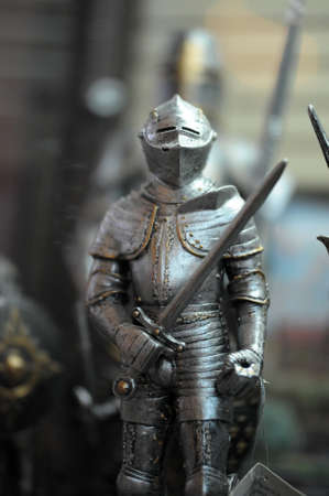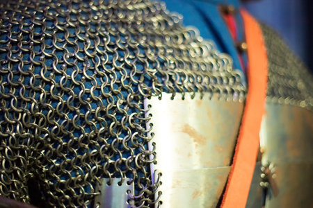 Close up of middle ages armor of the knight. Historic armoring used in combat battles.