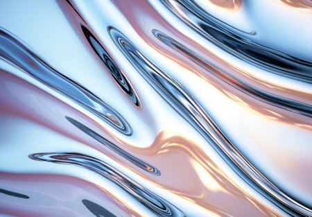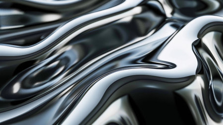 Shiny metallic surface with smooth waves reflecting light in an abstract design