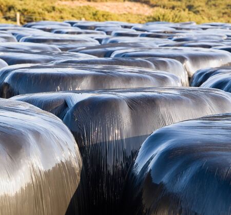 Wrapped hay bales detali The hay bales are protected from moisture with plastic