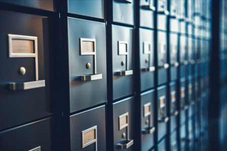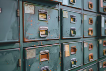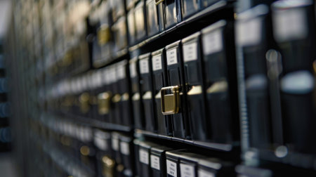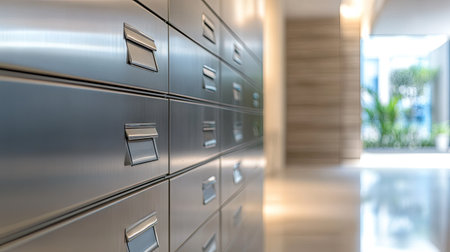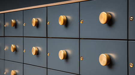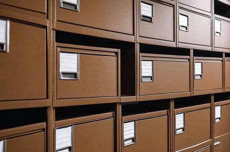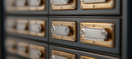 Array of Elegant Safe Deposit Boxes with Brass Accents for Secure Storage and Financial Protection