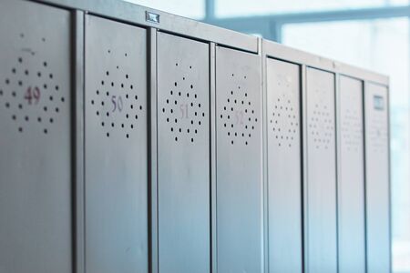 Rows of Metal Lockers: Symbolizing Strength and Security for Protected Spaces. Concept Locker Security, Strength, Protection, Metal Lockers, Symbolism