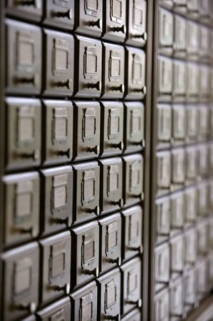 Metal drawers or regals for storing different parts. Fire proof containers at a service or parts warehouse. All metal drawers closed
