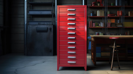 chest red tools illustration storage drawers, compartments workshop, polished shiny chest red tools