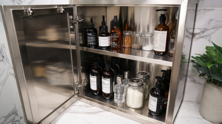 This stainless steel storage cabinet features open shelves and a spacious interior, ideal for kitchen or industrial use, ensuring durability and efficient organization.