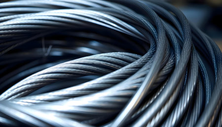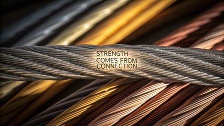 Intricate steel cables braided together in a visually compelling pattern, showcasing the core concept of strength, perfect for illustrating unity and teamwork.