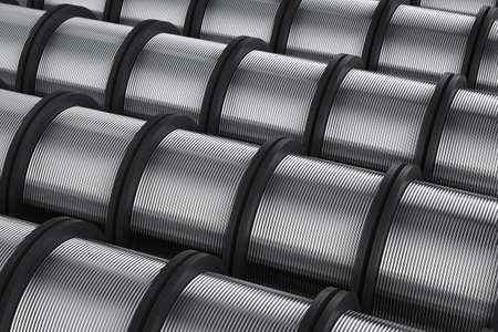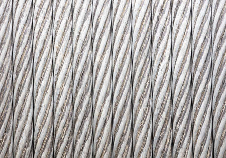 Industrial abstract background. Steel cable close-up photo. New rope lubrication.