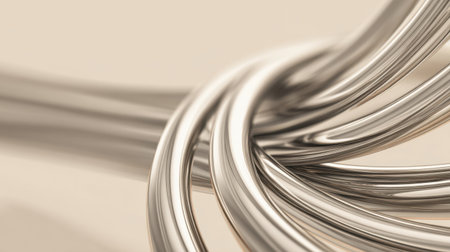 This image showcases an elegant abstract composition of intertwined metallic strands. The soft lighting enhances the texture and reflection, embodying modern design aesthetics.