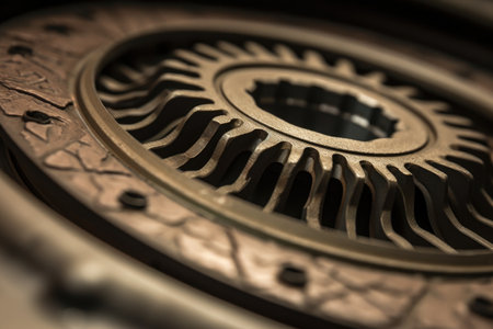 An intriguing photo capturing the intricate beauty of mechanical gears in motion, showcasing the essence of industrial engineering