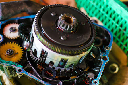 Details of a disassembled automatic transmission of a passenger car with a shallow depth of field