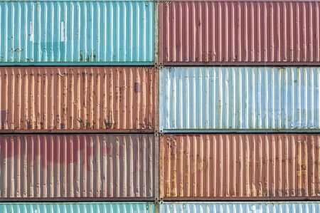 Rusty shipping container texture showcasing various colors and weathered surfaces from a port location
