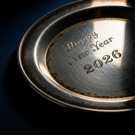 closeup of a metal plate with the words happy new year 2019