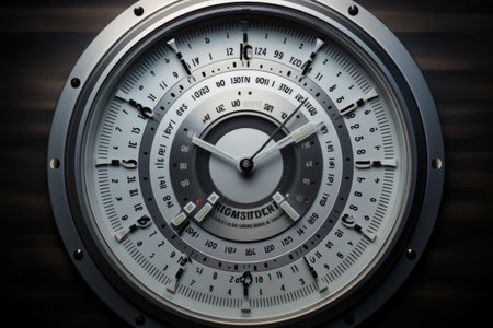 A gauge chart with a needle pointing to a specific value on a scale. AI generated