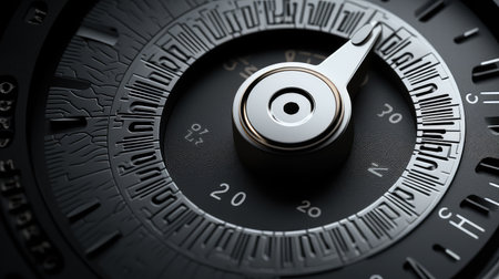Closeup of combination safe lock with number zero on focus