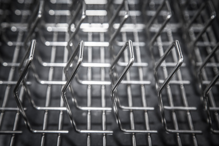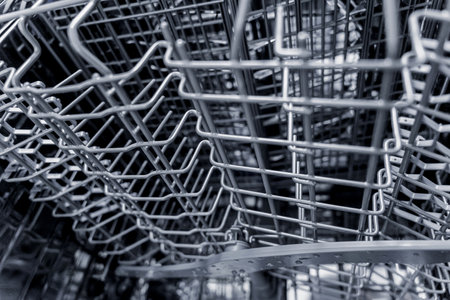 Dishwasher, gray mesh dishwasher. Selective focus