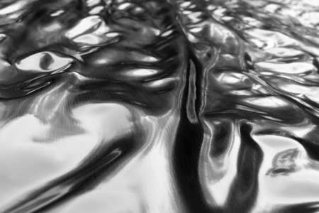 Elegant wavy chrome texture reflecting light, creating a modern abstract background
