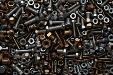 Stainless steel nuts and bolts background, high quality generative ai