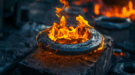 Horseshoe production process. Horseshoe in flames