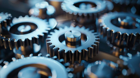 Close-up of precision-engineered steel gears with intricate details and craftsmanship.. AI generated.