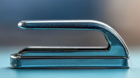 This high-resolution image features a sleek metal stapler resting on a blue background, ideal for showcasing essential office supplies, highlighting design and functionality.