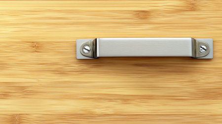 A close-up view of a modern metal handle mounted on a bamboo surface, showcasing a minimalist design suitable for contemporary furniture and home decor.