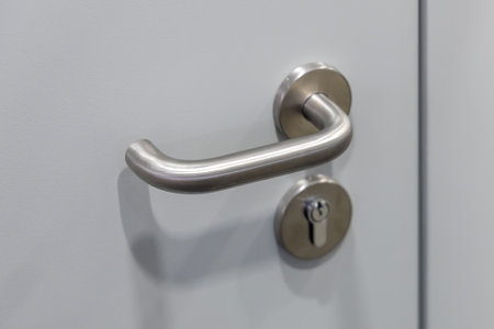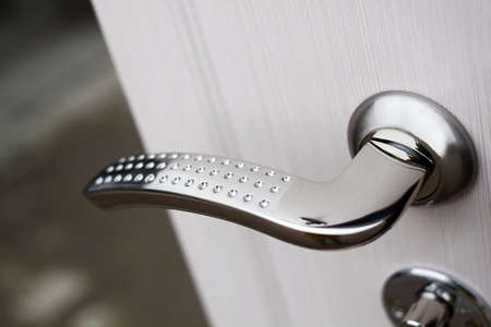close up of a door handle on a door