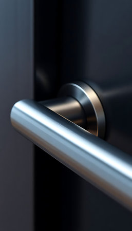 A sleek door handle creates an interplay of shadows on a smooth wall, showcasing modern design elements and soft ambient light.