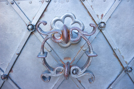 Close up of old metal door handle