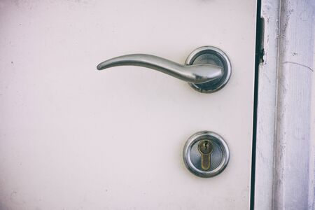 Old door handle on a white wall. Shallow depth of field.