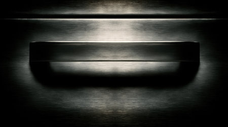 Close-up image of a dark and glossy metal drawer handle showcasing a soft light reflection, ideal for modern design projects and interior inspiration.