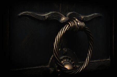 Ancient door handle on old wooden door