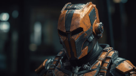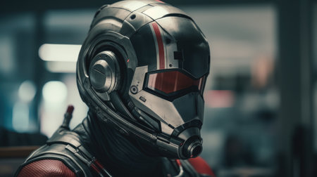 AI Generated. A futuristic hero in a dark suit and helmet stands ready