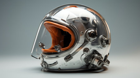 Futuristic astronaut helmet with visor up isolated on grey background.