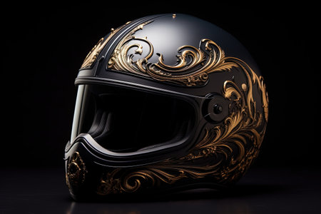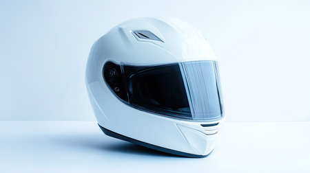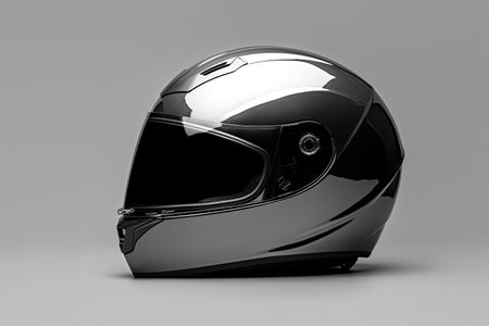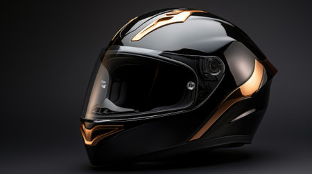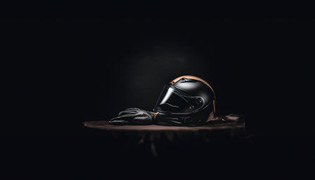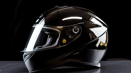 A striking black racing helmet with a tinted visor sits against a moody backdrop. This image captures the essence of motorcycle safety and performance, ideal for enthusiasts.