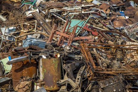Detail of a huge mountain of mainly metal garbage and appliances in a junkyard