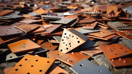 Metallic Scraps in a Yard: Embracing the Concept of Material Reincarnation through Recycling. Concept Metallic Scraps, Yard Recycling, Material Reincarnation, Sustainable Practices