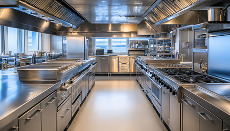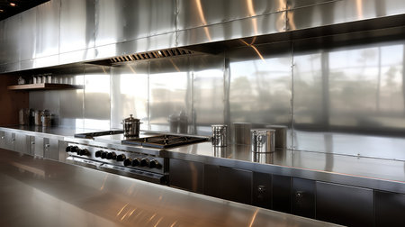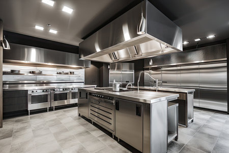 Professional kitchen in restaurant. Modern equipment and devices. Empty kitchen