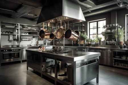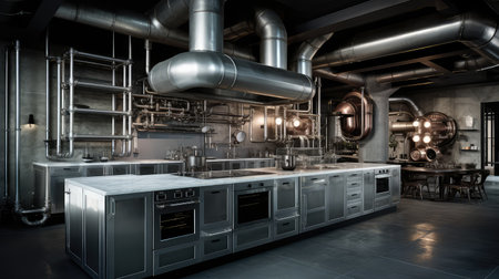 Restaurant equipment. Modern industrial kitchen. 3d illustration