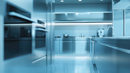 Kitchen interior, modern kitchen with a luxury mixer, breakfast concept, kitchen background, concept of healthy eating, interior of modern kitchen in gray blue tone